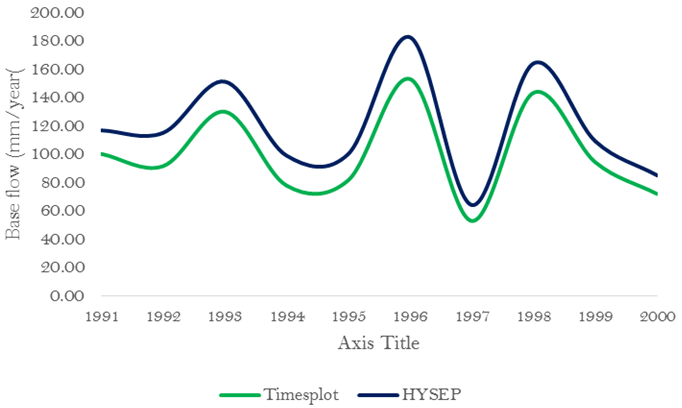 The above water level data show only two seasons (one year). Several years’ water level data are needed to show the complete picture of recurrent groundwater level fluctuations over prolonged climatic and metrological conditions. The following river flow recurrence data is analysed by base flow separation methods in an attempt to at least portray long period surface water level fluctuations and drought recurrences (Modified from Tenalem [21] )