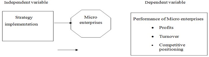 The study assumed a cause and effect relationship between strategy implementation and performance. The independent variable is strategy implementation which is expected to have a positive relationship with the overall performance of the enterprises. Once the company has selected and implemented the right strategy its performance is expected to thrive. The dependent variables to be influenced by strategic implementation are profits, business turnover and market positioning. This information is in shown in the conceptual framework in Figure 1
