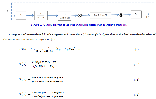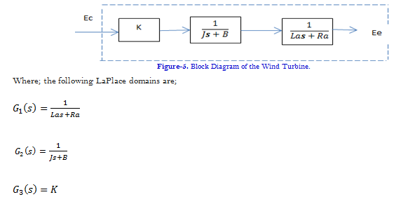 It is worthwhile pointing that the simplified block diagram shown in Figure.5 represents of the wind turbine according to equations (1), (2) and 3 in the Laplace domain;
