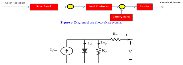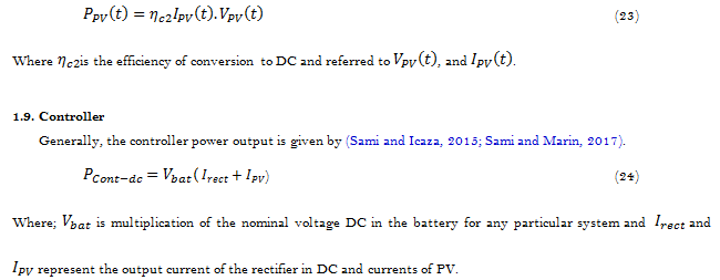 Figures (9) through (11) describe the block diagrams of the electric power conversion energy, the solar panel Photovoltaic PV power generation as well as the direct current solar PV formulations.