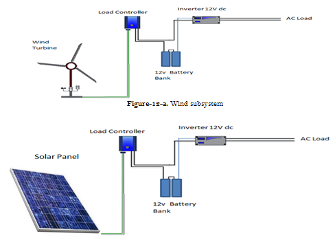 The battery stores excess power going through the load charge controller (figure 12-a, and figure 12b). The battery also keeps voltage within the specified voltage and thus, protects over discharge rates, and prevent overload.