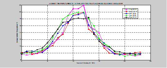 In the Figure 14 through 16 the typical profiles of environmental parameters at the site during such as ambient temperature, solar radiation and wind speed are presented several the year 2016 at different times of the day. The environmental data presented in the aforementioned figures were used in the modeling and simulation of the system.