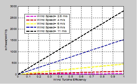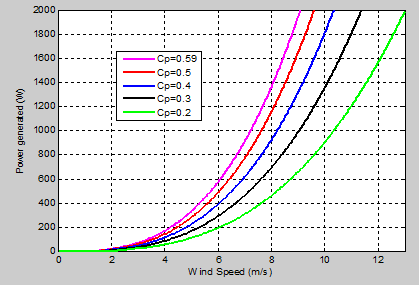 In Figure 26, we have presented the results from the mathematical model used simulated in Matlab and compared to the power data measured at different wind velocities (Sami and Icaza, 2015 ). The discrepancy between the model and the simulated data can be attributed to the fact that the Betz coefficient considered in the modeling was the optimum value; Cp = 0.59, and the data available were at approximately using Co=0.46.