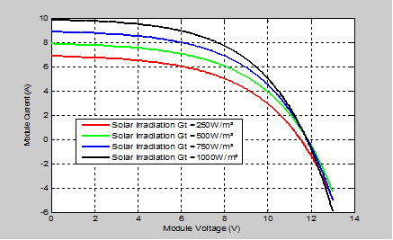 Figure-20. Voltage-Current curve for different values of irradiance- W/m2.