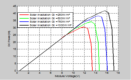 A comparison between the results of the Matlab model and solar panel data is presented in (Kavitha and Kamdi, 2013 ; Sami and Icaza, 2015 ) in Figure. 28. It can be observed from this figure that solar panel power increases as a function of the generated voltage up to a certain limit of 14 V and then significantly power is reduced