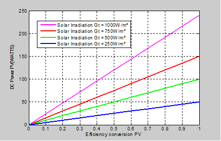 Figure-22. DC Power PV- Efficiency Conversion PV for different values of irradiance (W/m2).