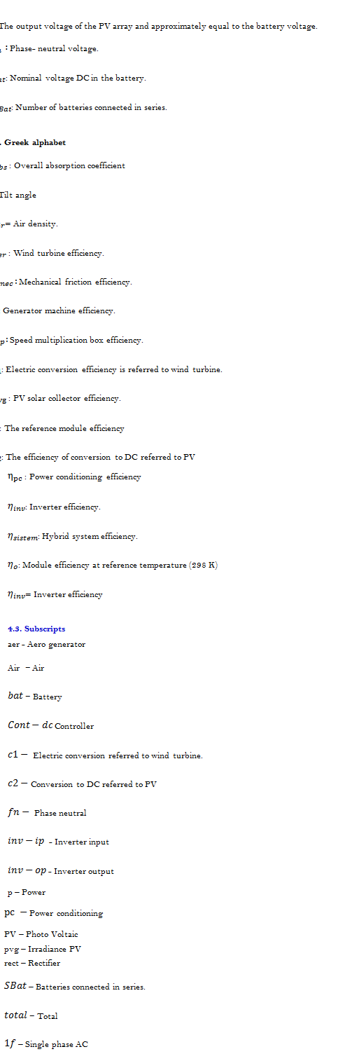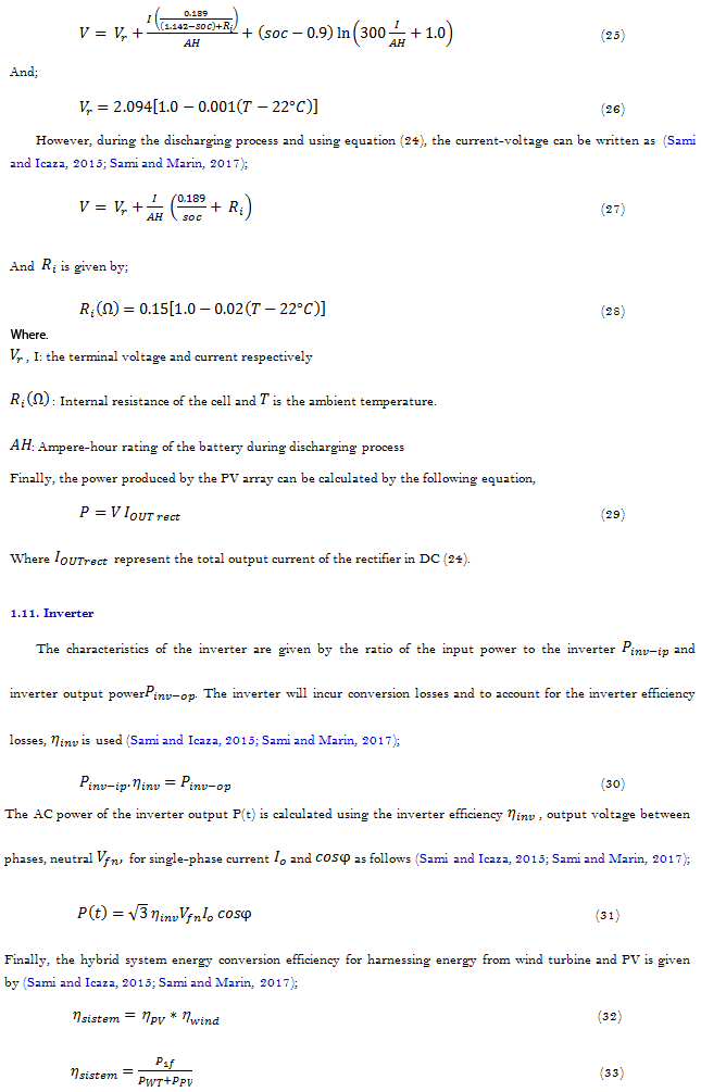 In addition, other studies were reported on PV-wind-battery hybrids and PV-wind-diesel-battery hybrids for rural electrification in Colombia (Howell et al., 1982 ; Atideh and Zhenhua, 2008 ; Fargali et al., 2010 ; Craig and Zhiwen, 2011 ; Mustafa, 2013 ; Saha et al., 2013 ; Yoshimasa et al., 2015 ). Furthermore, a numerical model based upon the energy conversion equations integrated and simultaneously solved to describe the total power generated by a hybrid solar photovoltaic, wind turbine and hydraulic turbine system was presented by Sami and Icaza (2015 ) where a simulation model was validated against experimental data. It is worthwhile noting that the energy conversion equations were coded with MATLAB-V13.2. In addition, reference (Sami and Icaza, 2015 ) presented an analysis of stability through the traces of the locus of the roots.