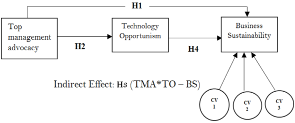 H3: Technology opportunism plays a mediating role between top management advocacy of new technology and business sustainability.