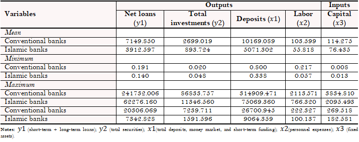Inputs and outputs were selected for the current study by following the process described in several studies (Alexakis et al., 2018; Colwell & Davis, 1992; Kamarudin et al., 2017a; Sufian & Habibullah, 2014) . Table 2 presents all the variables, derived from the MPI model,that were examined through nonparametric DEA in the initial stages of the analysis.