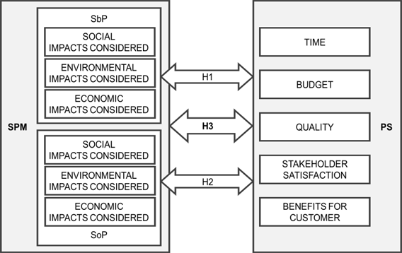 Table 1 shows that most of the initial studies were conceptual in nature. For example, Mishra et al. (2011) links PS to ethics in business. They conclude that “The project manager should make sure that he is completing the project while keeping the ethical standards and social impact in mind.”. Craddock (2013) also links PS to business and therefore aligns the criteria of PS with business excellence models, such as the European Foundation for Quality Management (EFQM) model. And as one of the EFQM model’s fundamental concepts of excellence is “Taking responsibility for a sustainable future”, he concludes that sustainability should be integrated in the criteria for PS and that SPM would therefore positively impact PS.
