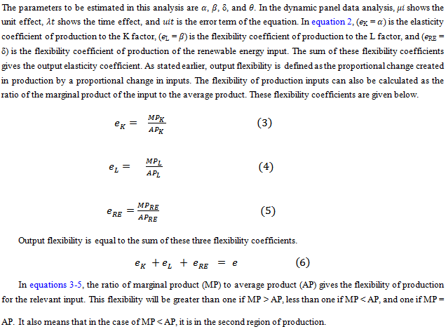 This study contributes to existing literature by investigating the output elasticity coefficients of capital and renewable energy using the Cobb–Douglas production function approach.