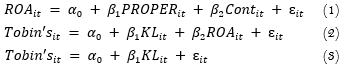 Equation 3 presents the direct effect of environmental performance (CPRAP) on firm value (Tobin's) before mediation by financial performance (ROA) to answer our third hypothesis.