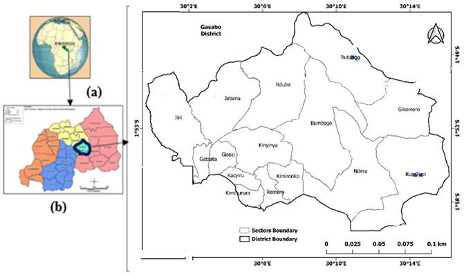 Figure-1. Map indicating the location of study areas (a) Map of Africa, (b) Map of Rwanda and Map of Gasabo district.