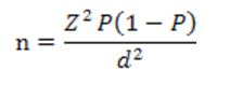 The sample size was determined by using the formula stated by Dohoo, Martin, and Stryhn (2009) as follows:
