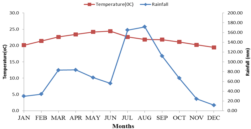 Figure-1. Average monthly distribution of Temperature and Rainfall of Merti district (1990-2014). |