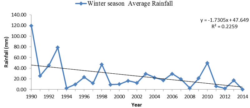 Figure-4. Year to Year variability in annual Winter Rainfall averages of Merti district (1990-2014). |