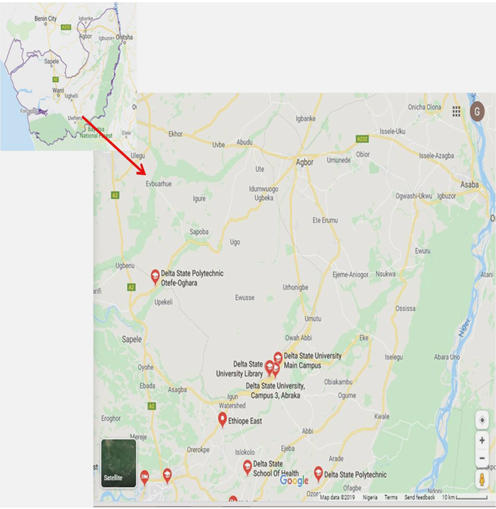 Figure-1. Map of Delta State showing the study area.