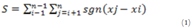 ,where, S is the Mann-Kendall’s test; xi and xj are the sequential rainfall values in the year i and j (j>i), and n is the length of the time series. The Sgn (xj −xi) is equal to +1, 0, −1 if z is greater than, equal to, or less than zero, respectively Equation 1. The null hypothesis is that the data are independently and identically randomly