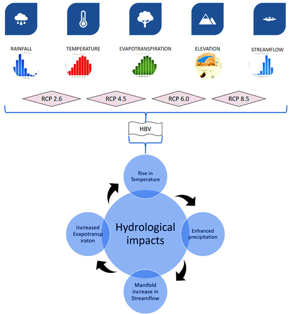 The complexity and mutual inter-dependency of mountain environmental and socio-economic systems pose significant problems for climate impact studies [2]. Climate change is expected to contribute to increased variability of river runoff due to changes in timing and intensity of precipitation, as well as melting of snow [3]. In literature, runoff is widely found to increase as the snow melts which contributes significantly to the flow regime of basins in the Hindukush Ranges [4].