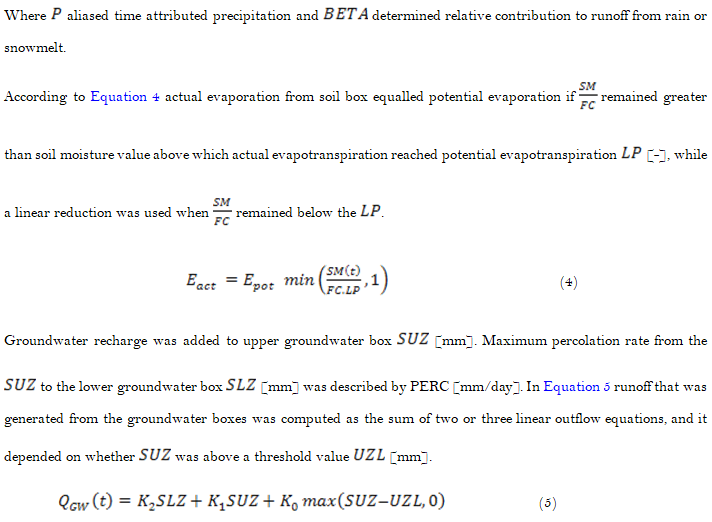 The HBV model was developed at the Swedish Meteorological and Hydrological Institute (SMHI) to forecast inflow to hydropower stations, but over the years it has been used for various applications due to its development, such as, for hydrological impacts of projected climate change, and flood forecasting [19].