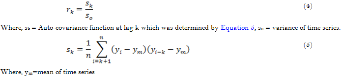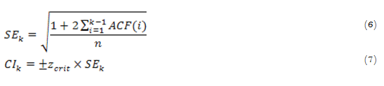 Autocorrelation function (ACF) at lag k (rk) was calculated with Equation 4.