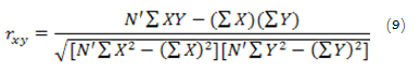 Where, X= temperature, humidity, sunshine hour, wind speed and Y = reference crop evapotranspiration, crop water requirement, net irrigation water requirement and effective rainfall. The significance of rxy was computed with Pearson’s product- moment method. If the value of r with Pearson’s product- moment method at level of (N’-2df) is less than the calculated with Equation 9, then the X and Y has significantly the correlation [12].