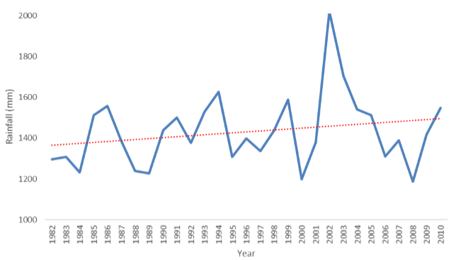 The cause of these fluctuation in the amount of rainfall across these study areas is attributed to the increasing impact of climate change. This is majorly caused by the increase in anthropogenic activities in these areas, which is as a result of the increased influx of people into these areas from neighboring rural areas.
