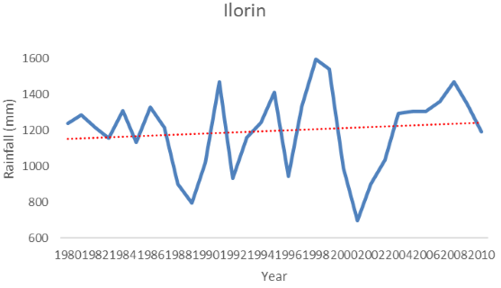 Figure-5. Rainfall at Ilorin for the period 1980 – 2010.