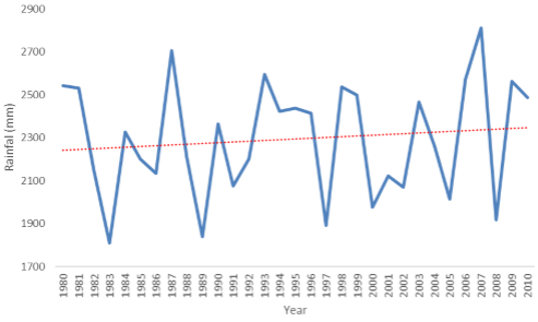 Fgure-7. Rainfall at Port-Harcourt for the period 1980 – 2010.