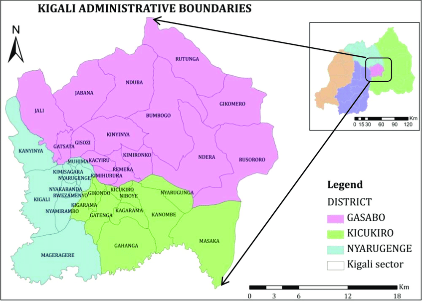 Rwanda country capital is Kigali city with landscape of hills region and valleys and referred as the central plateau. The city composed three districts as follow; Gasabo, Kicukiro and Nyarugenge with 731.4 km square. Those 3 districts have 35 sectors was subdivided into 161 cells. The cells comprised also a total number of 1,061 imidugudu literally known as village. Kigali has the highest population density of the country. It is currently occupied by approximately 1.2 million peoples with 70% rural population, which is comparatively young. The youth make up about 60% and women create slightly more than 50% [14].