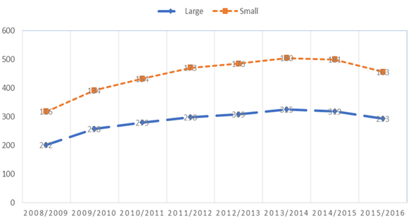 Figure-1. Enrolment trend in large and small schools from 2008-2016.
