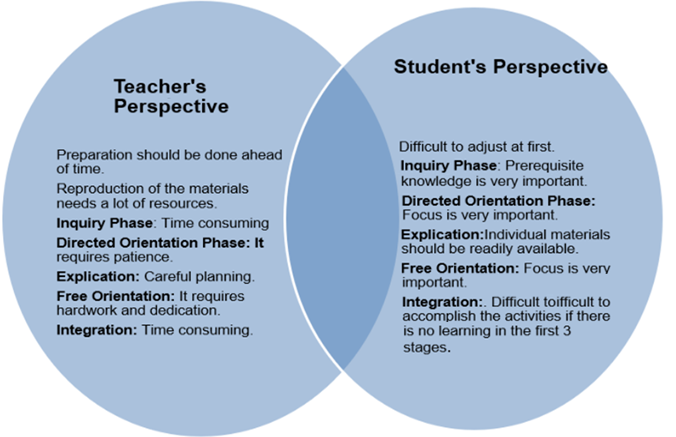Integration- This is the last phase and one of the challenges is planning the activity for this stage. Students’ learning is also evident in this stage.