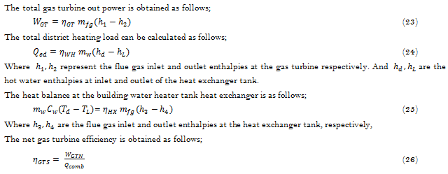 On the other hand, the energy balance at the biomass flue gas district heater (Korzynietz et al., 2012; Mustafa, 2013) can be used to estimate the hot water temperature time-variation in the heater tank to be used for district heating as follows;