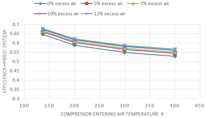 Figure-11. Efficiency of hybrid system; Biogas Turbine, PV, District heating at different compressor air entering temperature