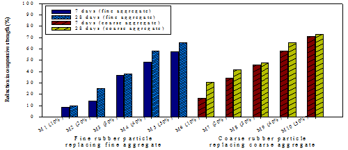 Figure-8.Compressive strength of hardened rubberized concrete compared to plain concrete.