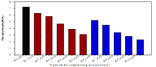 Figure-10. Flexural strength at 28 days of hardened rubberized concrete compared to plain concrete.