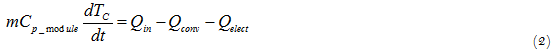And the Solar energy absorbed by the PV cell, Qin, is given by equation (1).