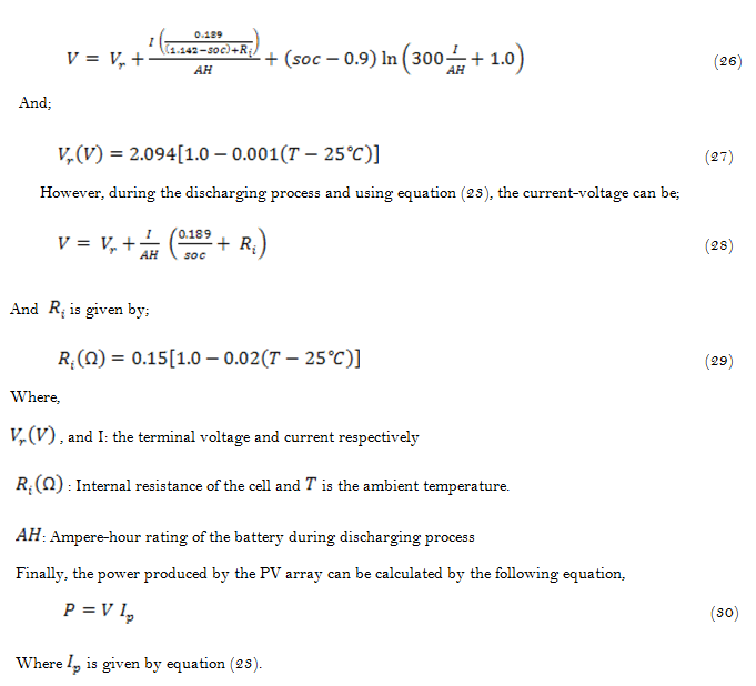 The solar photovoltaic panel is constructed of various modules and each module is consisted of arrays and cells.  The dynamic current output can be obtained as follows (Fargali et al., 2010; Sami and Marin, 2017; Sami and Marin, 2017; Sami and Rivera, 2017).