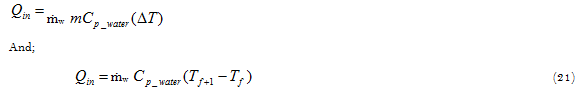 To calculate the heat transfer fluid flow rate in the pipe, equation (21) is used as follows;