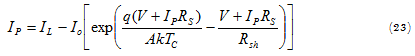 The PV cell temperature, Tc,  is influenced by various factors such as solar radiation, ambient conditions, and wind speed. It is well known that the cell temperature impacts the PV output current, performance and its time-variation can be determined from references (Sandnes and Rekstad, 2002; Fargali et al., 2010; Li et al., 2010; Gangadevi et al., 2013; Zhan et al., 2014; Li, 2015; Sami and Marin, 2017; Sami and Marin, 2017; Sami and Rivera, 2017).