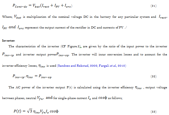Meanwhile, the PV cell Temperature is computed from the following heat balance (Fargali et al., 2010; Sami and Marin, 2017; Sami and Marin, 2017; Sami and Rivera, 2017)