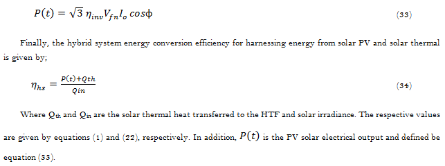 Finally, the hybrid system energy conversion efficiency for harnessing energy from solar PV and solar thermal is given by;