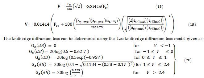 Knife edge  diffraction parameter (V) is determined as follows (Akkasli, 2009):