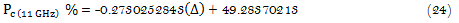 For the 11  GHz , the LOS percentage clearance is related to refractivity gradient  as follows;