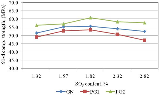 Figure-6. Effects of gypsum on 91-d compressive strength.
