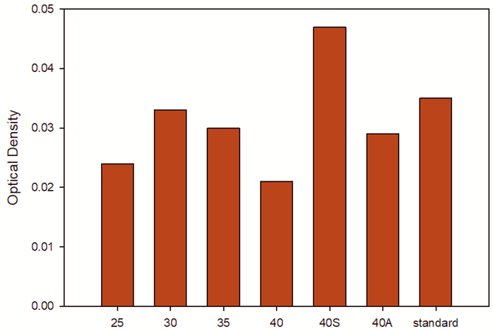 Reference to standard ethanol, the optical density of the produced ethanol based on the fermentation temperature is presented in Figure 1.
