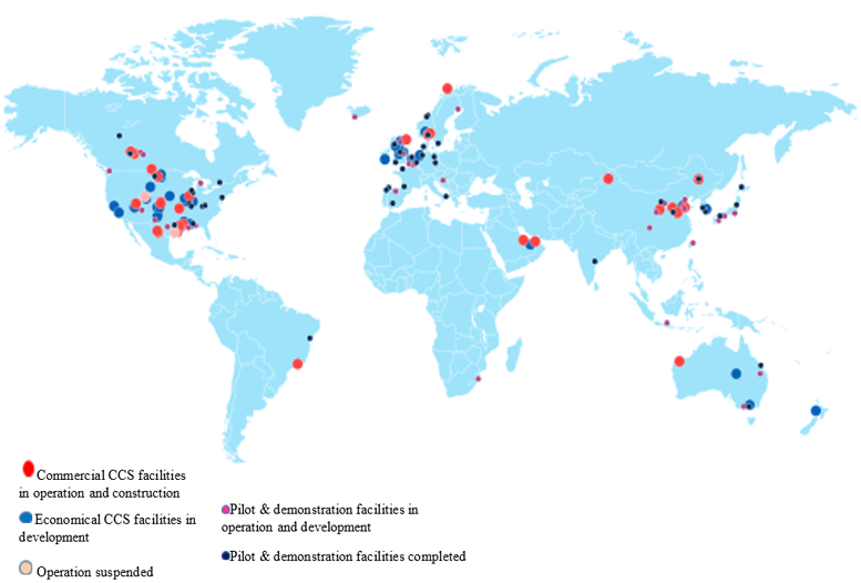Figure 1. Global geographical distribution of CO2 Gas capture plants.