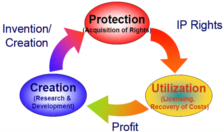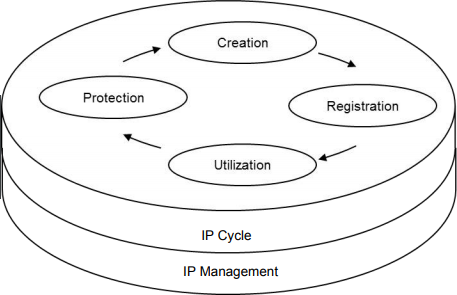 In an attempt to turn Japan into an intellectual property-based nation, the Japanese Strategic Council on IP introduced the IP Policy Outline in July 2002, which clearly specifies Japan’s approach to achieving a dynamic economy and vigorous society through a so-called Intellectual Creation Cycle (Japan Strategic Council on Intellectual Property, 2002). This cycle serves as a framework for developing and implementing IP strategy with a special focus on IP rights generated from both private and public sectors.  The cycle comprises three strategies on IPM: creation, protection and utilisation Figure 1.