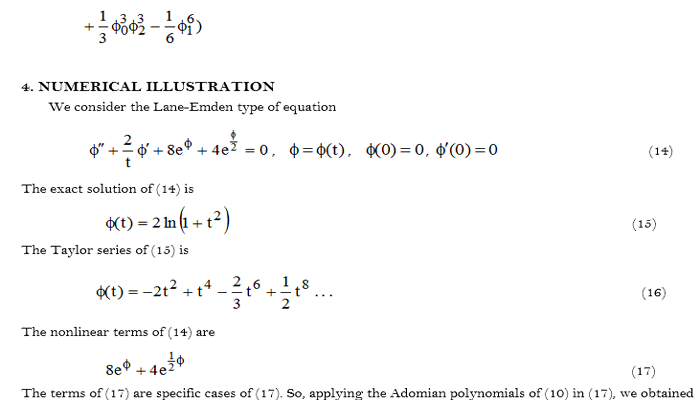 Keywords:Adomian polynomials, Adomian decomposition method, Lane-Emden.