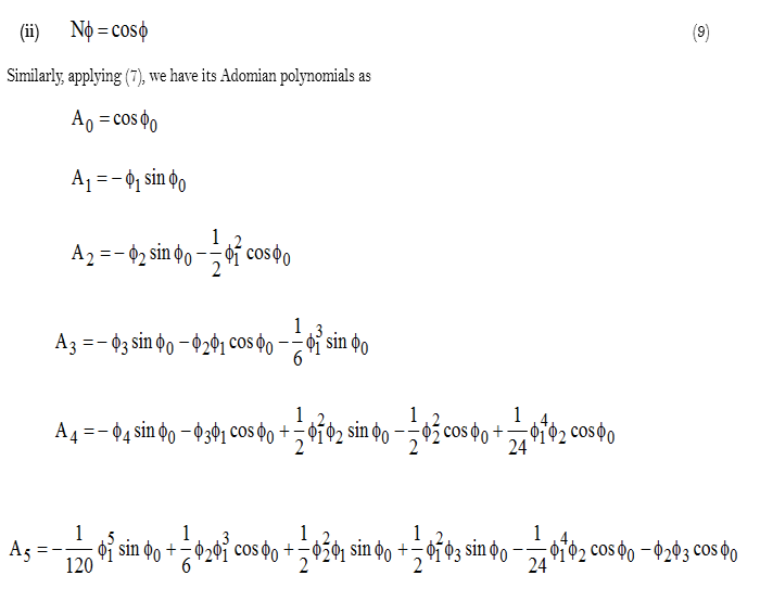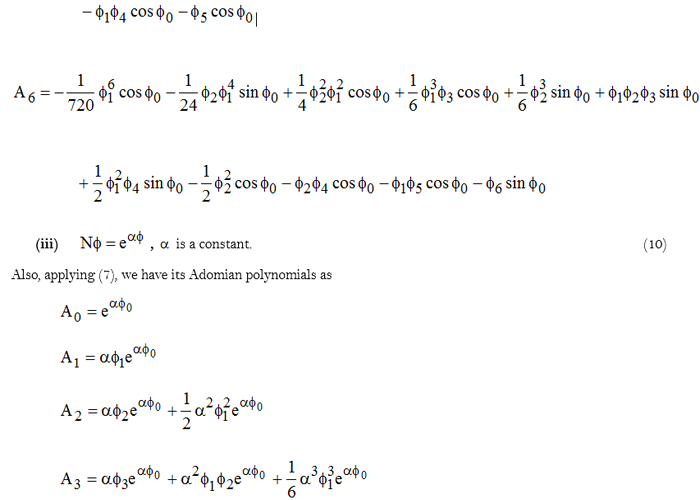 In this section, we give the first few terms of Adomian polynomials of some frequently occurring nonlinear terms in a linear functional. Suppose